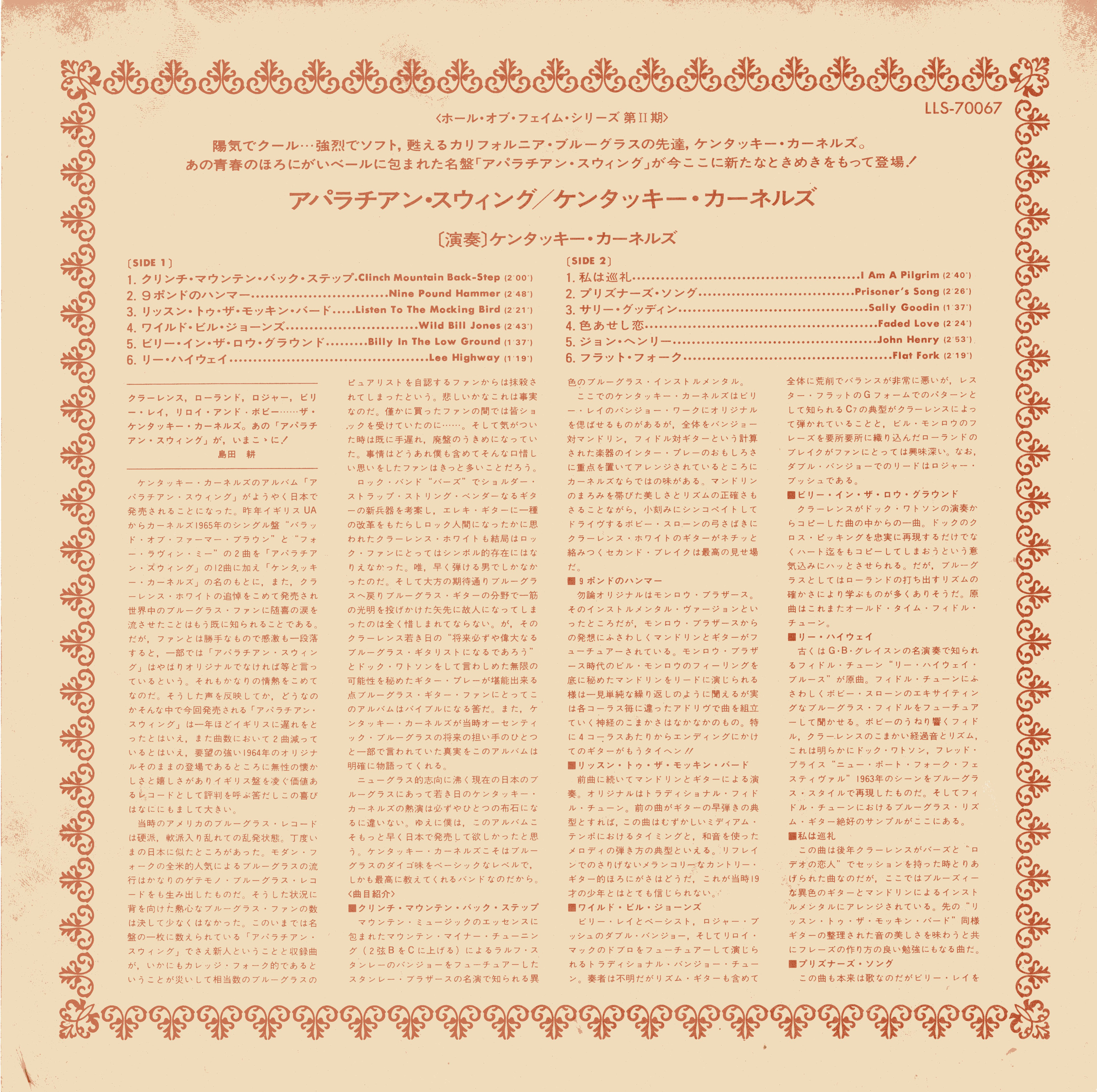 陽気でクール・・・強烈でソフト、蘇えるカリフォルニア・ブルーグラスの先達、ケンタッキー・カーネルズ。あの青春のほろにがいベールに包まれた名盤「アパラチアン・スウィング」が今ここに新たなときめきをもって登場!