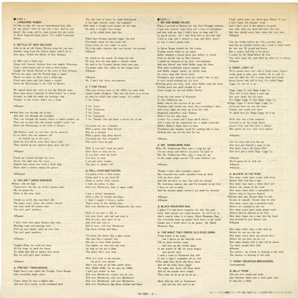 - You Ain’t Goin’ Nowhere(ユー・エイント・ゴーイン・ノーホエア)ジョーン・バエズ
