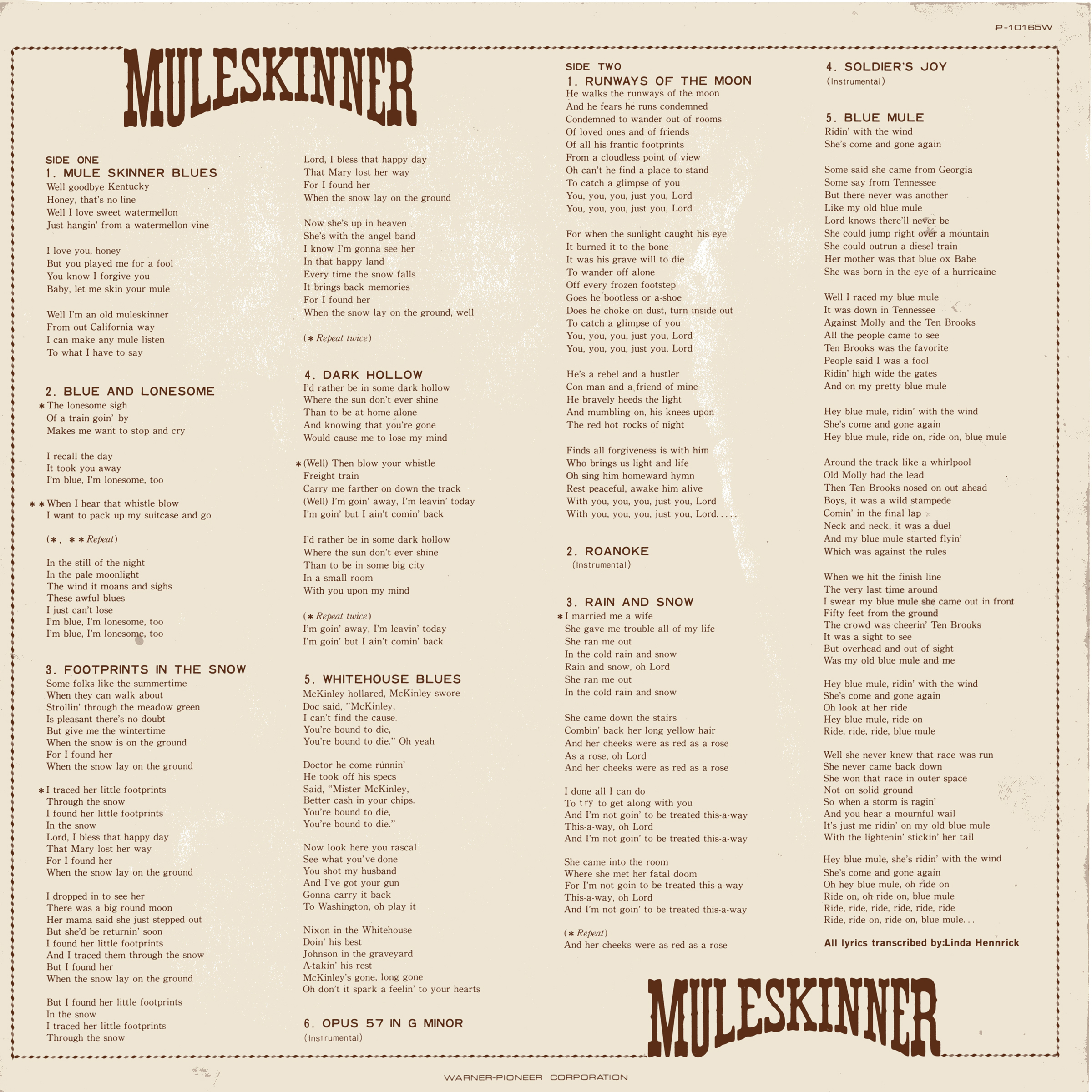 ビル・モンローのツアー・バスのトラブルの為、急遽、リチャード・グリーンがTVショーの為に集めたTVセッション(MULESKINNER LIVE)を見たジョー・ボイドが、「このメンバーで、アルバムを作らないか?」と持ちかけ、出来上がった凄過ぎるアルバム。
