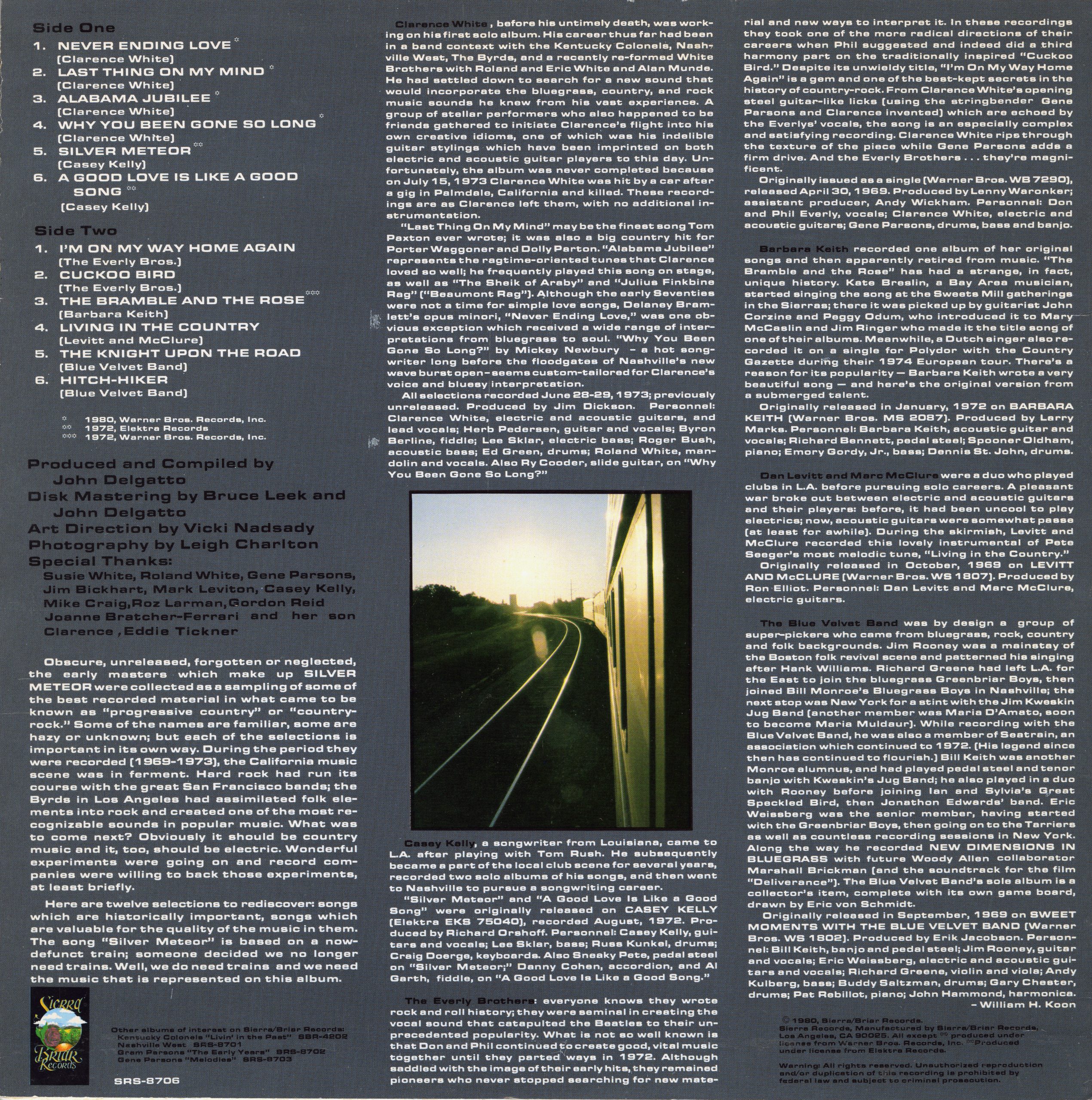 ジャケットには、「Clarence White, electric and accoustic guitars, and lead vocals;Herb Pedersen, guitar and vocals;Byron Berline, fiddle;Lee Sklar, electric bass;Roger Bush, acoustic bass;Ed Green, drums;Roland White, mandlin and vocals. Also Ry Cooder, slide guitar, on “Why You Been Gone So Long?”」とクレジットされています。